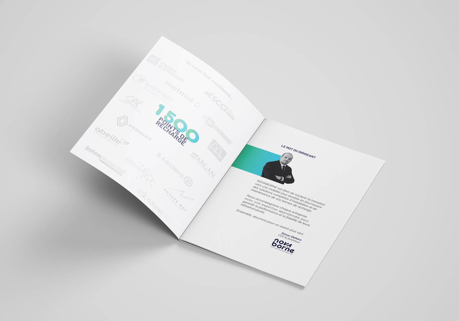 Livret institutionnel de 16 pages présentant NOVABORNE, son expertise, sa gamme de bornes de recharge et ses perspectives de développement. Un support structuré et pédagogique, destiné aux acteurs publics et privés, mettant en avant des solutions de recharge fiables, évolutives et adaptées aux enjeux actuels de la mobilité électrique.
